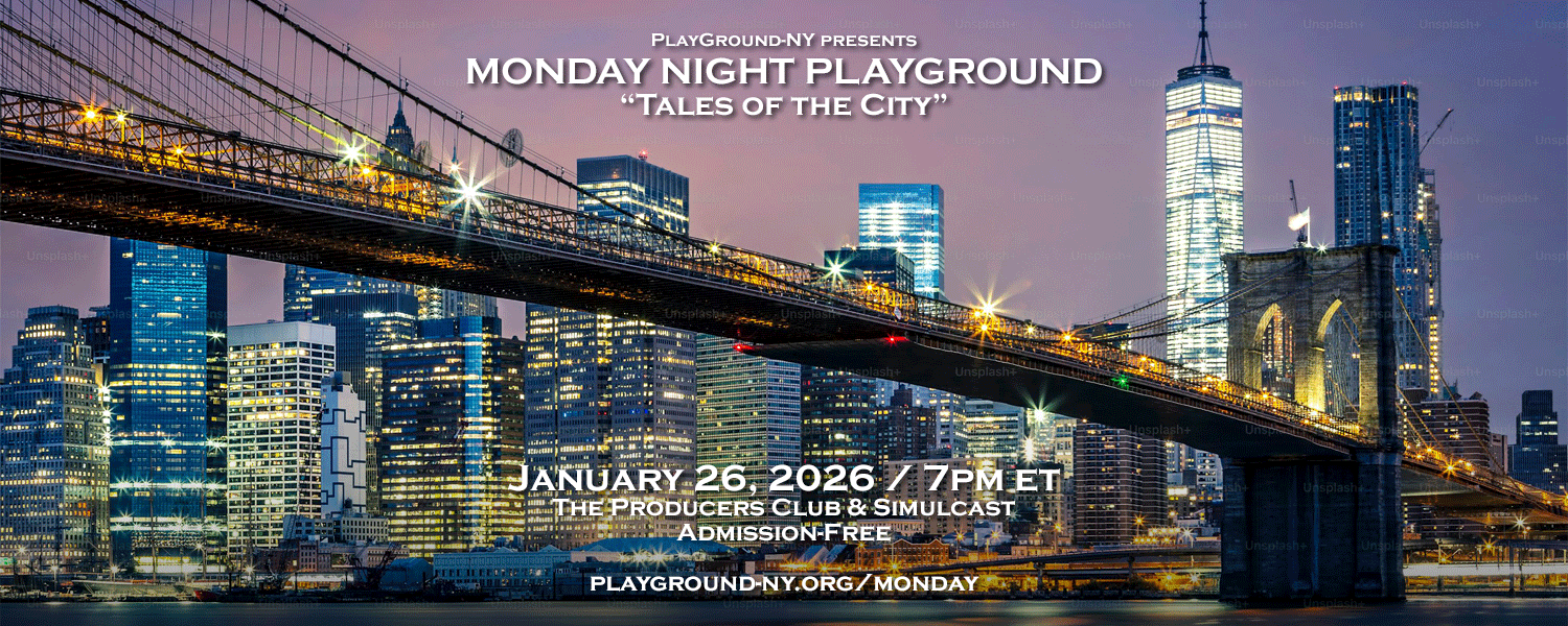 The topic for the January 26th Monday Night PlayGround-NY has been announced: TALES OF THE CITY. Playwrights in the PlayGround-NY Writers Pool have been invited to generate an original short play, fictional or fact-based, historical or contemporary, that is specific to New York City, its people and its history (i.e., the play helps tell a story of the city and couldn’t be transplanted to another city). Celebrate your city on January 26th at The Producers Club (358 W 44th St, New York, NY 10036)! Get tickets at playground-ny/boxoffice.